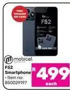 This special is available in various stores, view all products to get the cheapest F52 Smartphone. If you'd like to find out whether this product has a bigger discount in another store, check the category 'Department Stores'. You may also find these specials interesting: Mobicel F52 32GB, Dremel F0138240JF 850007409 & DREMEL F0138240JF.