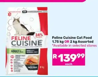 Game offers a wide collection of products, besides the Feline Cuisine Cat Food. Keep an eye on the weekly Game catalogue to find the best specials and promotions. Besides Feline Cuisine Cat Food, you can also find the following offers: Feline Cuisine Cat Food-1.75Kg Or 2Kg, Feline Cuisine Cat Food & Feline Cuisine Premium Cat Food.