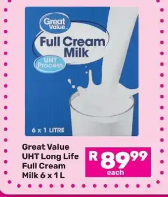 Great Value UHT Long Life Full Cream Milk 6 x 1 L Offer at Game