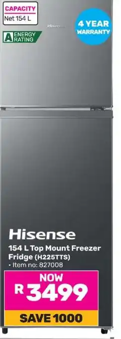 Now on special at Game: Hisense 154 L Top Mount Freezer Fridge (H225TTS) ✅ Valid from 20-01 to 23-02.