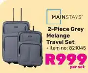 This special is available in various stores, view all products to get the cheapest Mainstays 2 Piece Grey Melange Travel Set 821045. If you'd like to find out whether this product has a bigger discount in another store, check the category 'Department Stores'. You may also find these specials interesting: Mainstays 5 Piece Red Travel Set 824192, Mainstays 4 Piece Black Travel Set 824201 & Mainstays 2-Piece Melange Luggage Set-Per Set.
