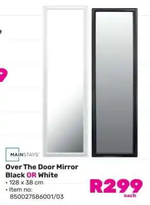 Game offers a wide collection of products, besides the Over The Door Mirror. Keep an eye on the weekly Game catalogue to find the best specials and promotions. Besides Over The Door Mirror, you can also find the following offers: Mainstays Over The Door Mirror Black Or White 850027586001/03, Angelo 4-door 3-drawer mirror robe & Jasmine 4-door 3-drawer mirror robe.