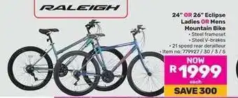 Now on special at Game: Raleigh 24 OR 26 Eclipse Ladies OR Mens Mountain Bike ✅ Valid from 30-12 to 19-01.