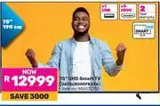 The Samsung 75 UHD Smart TV UA75U8000FKXXA (850032750) is available this week at Game as part of a special promotion. On this page, you’ll find everything about the promotional price, terms, and current specials. Browse related promotions and offers for Samsung 75 UHD Smart TV UA75U8000FKXXA (850032750) to make sure you don’t miss out.