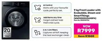 This discount promotion for Samsung Front Loader with Ecobubble, Steam and SmartThings runs from 23-01-2026 to 23-02-2026. Has it ended? No problem — other Samsung Front Loader with Ecobubble, Steam and SmartThings deals are always available. Follow the product category to stay informed when Samsung Front Loader with Ecobubble, Steam and SmartThings is back on special. By comparing Samsung Front Loader with Ecobubble, Steam and SmartThings prices and offers, you’ll always buy at the right moment.