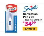 This special is available in various stores, view all products to get the cheapest Scripto Correction Pen (804594). If you'd like to find out whether this product has a bigger discount in another store, check the category 'Department Stores'. You may also find these specials interesting: Scripto Correction Pen 7ml 804594, Kores TriPen Correction Pen (837500) & Staedtler Correction Pen (419056)-8ml Each.