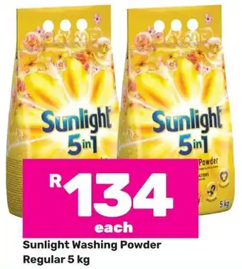 This special is available in various stores, view all products to get the cheapest Sunlight Washing Powder Regular. If you'd like to find out whether this product has a bigger discount in another store, check the category 'Department Stores'. You may also find these specials interesting: Sunlight Washing Powder Regular-5kg, Sunlight Washing Powder & Sunlight 5 in 1 Regular Handwash Powder.