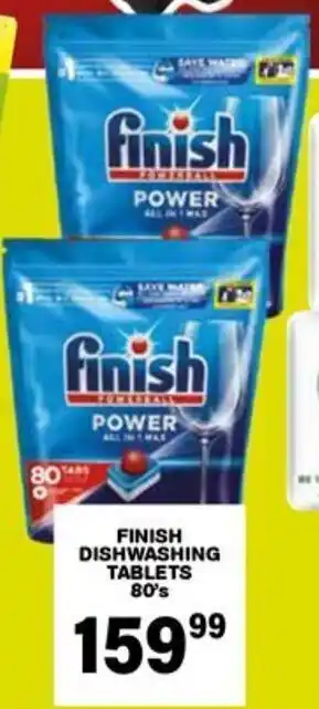 This special is available in various stores, view all products to get the cheapest Finish dishwashing tablets. If you'd like to find out whether this product has a bigger discount in another store, check the category 'Grocery stores'. You may also find these specials interesting: Finish Dishwashing Tablets Asstd., Finish Dishwashing Tablets All Variants & Finish Dishwashing Tablets + Machine Cleaner.
