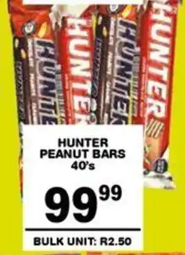 This special is available in various stores, view all products to get the cheapest Hunter peanut bars. If you'd like to find out whether this product has a bigger discount in another store, check the category 'Grocery stores'. You may also find these specials interesting: Hunter Chocolate Coated Peanut Bar 12 x 40g, Hunter Peanut Caramel Nougat Chocolate Bar & Hunter solenoid valve.