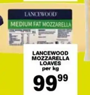 This special is available in various stores, view all products to get the cheapest Lancewood mozzarella loaves. If you'd like to find out whether this product has a bigger discount in another store, check the category 'Grocery stores'. You may also find these specials interesting: Lancewood cheddar or gouda loaves, Lancewood Medium Fat Mozzarella Cheese & Lancewood Medium Fat Mozzarella Cheese Ball.