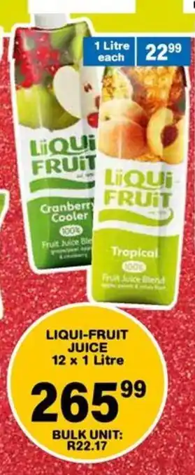 This special is available in various stores, view all products to get the cheapest Liqui-fruit juice. If you'd like to find out whether this product has a bigger discount in another store, check the category 'Grocery stores'. You may also find these specials interesting: Liqui fruit 100% juice, Liqui Fruit Juice Assorted & LIQUI-FRUIT 100% Fruit Juice.