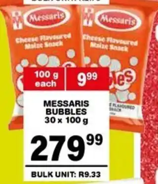 This special is available in various stores, view all products to get the cheapest Messaris bubbles. If you'd like to find out whether this product has a bigger discount in another store, check the category 'Grocery stores'. You may also find these specials interesting: Messaris bubbles flavoured maize snack, Messaris Cheese/ Spare Rib Bubbles Maize Snack & Messaris chips.