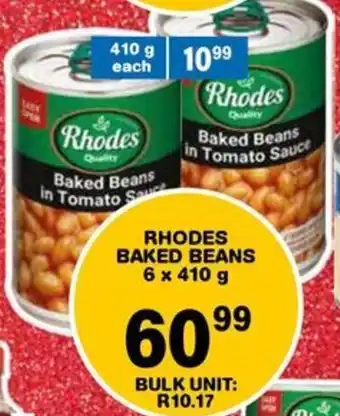 This special is available in various stores, view all products to get the cheapest Rhodes Baked Beans. If you'd like to find out whether this product has a bigger discount in another store, check the category 'Grocery stores'. You may also find these specials interesting: Rhodes Baked Beans, Rhodes Baked Beans in Tomato Sauce 410g & Rhodes Baked Beans in Tomato Sauce.