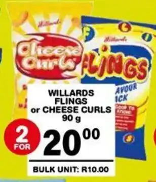 Giant Hyper offers a wide collection of products, besides the Willards flings or cheese curls. Keep an eye on the weekly Giant Hyper catalogue to find the best specials and promotions. Besides Willards flings or cheese curls, you can also find the following offers: WILLARDS Cheese Curls or WILLARDS Flings, WILLARDS FLINGS/CHEESE CURLS MAIZE SNACK 90g & Willards Cheese Curls Assorted or Flings 150g.