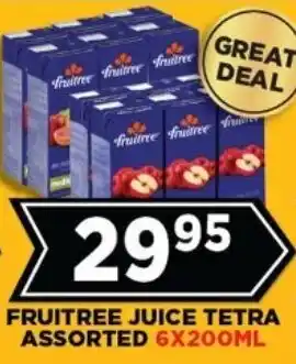 This special is available in various stores, view all products to get the cheapest Fruitree juice tetra assorted. If you'd like to find out whether this product has a bigger discount in another store, check the category 'Grocery stores'. You may also find these specials interesting: Fruitree Juice, Fruitree Juice Glass & ZOOM RTD/RHODES/TROPIKA/PURE JOY/FRUITREE 100% Juice Assorted 200ml 6s.