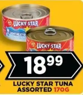 This special is available in various stores, view all products to get the cheapest Lucky star tuna assorted. If you'd like to find out whether this product has a bigger discount in another store, check the category 'Grocery stores'. You may also find these specials interesting: Lucky Star Shredded Tuna, Lucky Star Pilchards Assorted & LUCKY STAR Pilchards Assorted.