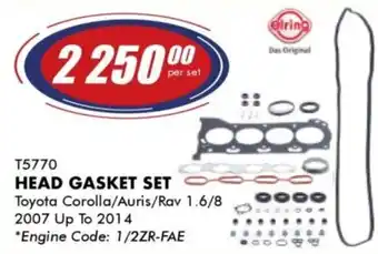 This special is available in various stores, view all products to get the cheapest Elring head gasket set. If you'd like to find out whether this product has a bigger discount in another store, check the category 'Cars & Motorbikes'. You may also find these specials interesting: Vika volkswagen/ audi head gasket, Vika volkswagen head gasket & Teddy Dough Extruder & 6 Head Set 826174.