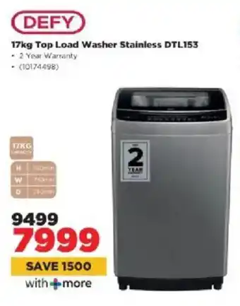 Defy Top Load Washer Stainless DTL153 promotion at HiFi Corp