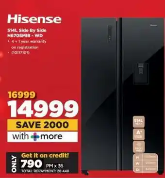 Hisense 514L Side By Side H670SMIB - WD promotion at HiFi Corp
