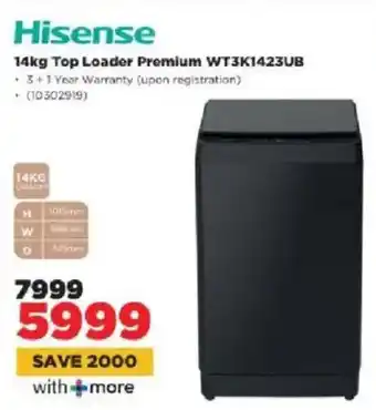 Hisense Top Loader Premium WT3K1423UB promotion at HiFi Corp