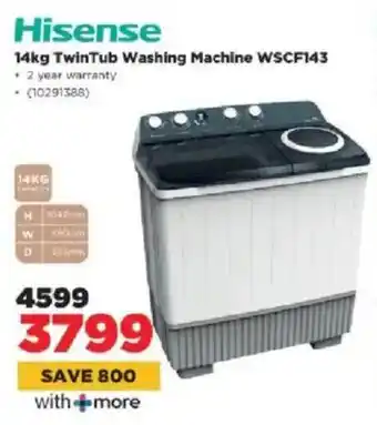 Hisense TwinTub Washing Machine WSCF143 promotion at HiFi Corp