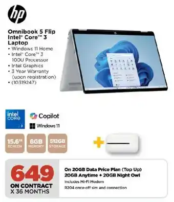 HP Omnibook 5 Flip Intel Core 3 Laptop offers and online specials, directly from HiFi Corp