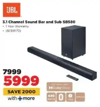 JBL 3.1 Channel Sound Bar and Sub SB580 promotion at HiFi Corp