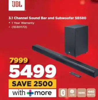 JBL 3.1 Channel Sound Bar and Subwoofer SB580 promotion at HiFi Corp