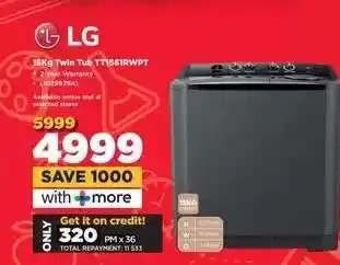 This LG 15Kg Twin Tub TT1561RWPT is currently part of a special promotion at HiFi Corp. All information regarding the current price, promotion terms, and validity period can be found on this page. You can also explore similar offers and promotions related to LG 15Kg Twin Tub TT1561RWPT, helping you make the best possible choice.