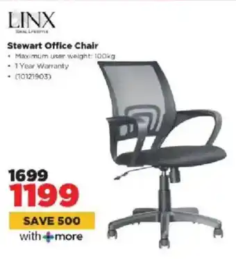 The Linx Stewart Office Chair is now available with a discount at HiFi Corp. On this page, you’ll find everything about the current price, promotion conditions, and how long the offer is valid. Also explore other offers and promotions for Linx Stewart Office Chair to make a smart and cost-effective choice.