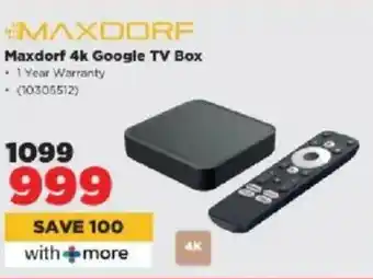 Now on special at HiFi Corp: Maxdorf 4k Google TV Box ✅ Valid from 29-12 to 3-01.