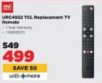 Now on special at HiFi Corp: One For All URC4922 TCL Replacement TV Remote ✅ Valid from 29-12 to 3-01.
