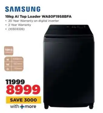 Samsung 19kg AI Top Loader WA80F19S8BFA promotion at HiFi Corp