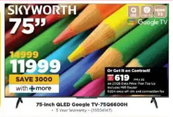 Skyworth 75-inch QLED Google TV-75Q6600H promotion at HiFi Corp