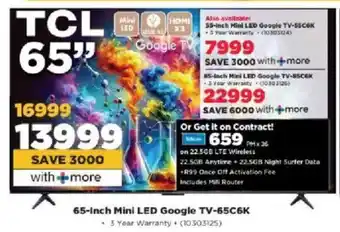 Now on special at HiFi Corp: TCL 65-Inch Mini LED Google TV-65C6K ✅ Valid from 29-12 to 3-01.