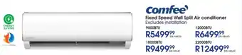 This special is available in various stores, view all products to get the cheapest Comfee Fixed Speed Wall Split Air conditioner. If you'd like to find out whether this product has a bigger discount in another store, check the category 'Electronics'. You may also find these specials interesting: TCL 12000BTU BreezeIN Split Air Conditioner, SAMSUNG Digital Inverter Split Air Conditioner 12000BTU & SAMSUNG Windfree Inverter Split Air Conditioner AR9500.