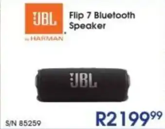 This special is available in various stores, view all products to get the cheapest JBL Flip 7 Bluetooth Speaker. If you'd like to find out whether this product has a bigger discount in another store, check the category 'Electronics'. You may also find these specials interesting: JBL Flip 7 Portable Bluetooth Speaker, JBL Flip Essential 2 Portable Bluetooth Speaker & JBL Flip Essential 2 Portable Bluetooth Speaker (OH4644).