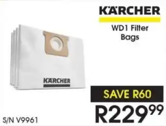 This special is available in various stores, view all products to get the cheapest Karcher WD1 Filter Bags. If you'd like to find out whether this product has a bigger discount in another store, check the category 'Electronics'. You may also find these specials interesting: Karcher Fleece Filter Bags WD2/ WD3, Karcher Fleece Filter Bags WD4/WD6 & Karcher One-Piece Cartridge Filter WD2.