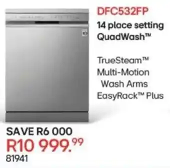 This special is available in various stores, view all products to get the cheapest LG 14 place setting QuadWash. If you'd like to find out whether this product has a bigger discount in another store, check the category 'Electronics'. You may also find these specials interesting: LG 14 place setting QuadWash, Beko 15 Place Setting Dishwasher Inox & Defy 15 Place Setting Dishwasher Inox.