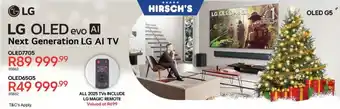 LG 65" OLED Evo AI TV promotion at Hirsch's