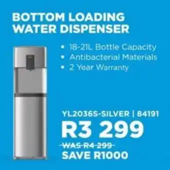Hirsch's offers a wide collection of products, besides the Midea bottom loading water dispenser. Keep an eye on the weekly Hirsch's catalogue to find the best specials and promotions. Besides Midea bottom loading water dispenser, you can also find the following offers: Eiger Top Loading Water Dispenser with Ice Maker, Midea counter top water dispenser & Metallic Fridge with Bottom Freezer and Water Dispenser.