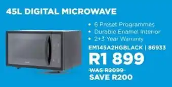 Hirsch's offers a wide collection of products, besides the Midea digital microwave. Keep an eye on the weekly Hirsch's catalogue to find the best specials and promotions. Besides Midea digital microwave, you can also find the following offers: Midea 30Ltr Digital Mirror Microwave 24-243, Midea 45Ltr Mirror Digital Microwave 24-245 & Midea 20L Digital Microwave Oven EM20-SILVER (850016279).