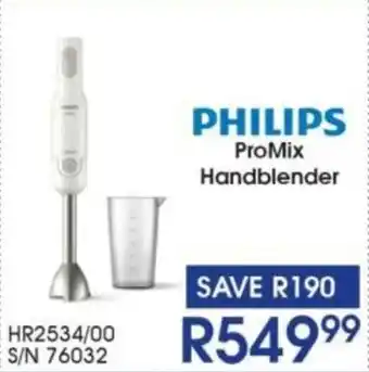 This special is available in various stores, view all products to get the cheapest Philips ProMix Handblender. If you'd like to find out whether this product has a bigger discount in another store, check the category 'Electronics'. You may also find these specials interesting: PHILIPS Powered Toothbrush, Philips Hair Dryer 1600W & PHILIPS ANALOG AIRFRYER 6,2L.