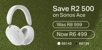 This Sonos Ace is currently available as part of a special promotion at Hirsch's. Be sure to check the current promotions filled with competitive prices and deals. You can order Sonos Ace online via Hirsch's website or get it at the best available price. Cataloguespecials.co.za collects the most relevant Sonos Ace offers and specials for you. Want to be notified first? Click the bell icon to receive a free alert when the product is part of a new promotion or available again.