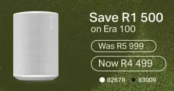 This special is available in various stores, view all products to get the cheapest Sonos Era 100. If you'd like to find out whether this product has a bigger discount in another store, check the category 'Electronics'. You may also find these specials interesting: Sonos Era 300, Sonos Era 100 Wireless Speaker & Sonos Era 300 Bt Smart Wifi Speaker White.