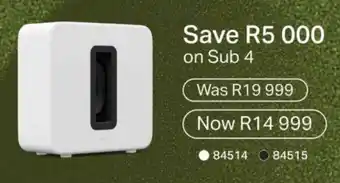 This special is available in various stores, view all products to get the cheapest Sonos Sub 4. If you'd like to find out whether this product has a bigger discount in another store, check the category 'Electronics'. You may also find these specials interesting: Sonos Sub Mini, Sonos Ace & Sonos Beam.