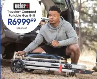 This special is available in various stores, view all products to get the cheapest Weber Traveler Compact Portable Gas Grill. If you'd like to find out whether this product has a bigger discount in another store, check the category 'Electronics'. You may also find these specials interesting: Weber Traveler Gas Braai (762198), Weber Compact Kettle Grill & Weber 57cm Compact Kettle Grill Black and Etosha Triquettes 5kg.