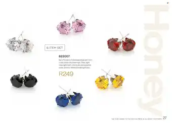 Honey Fashion Accessories offers a wide collection of products, besides the Honey stainless steel and 7mm cubic zircon stud earrings. Keep an eye on the weekly Honey Fashion Accessories catalogue to find the best specials and promotions. Besides Honey stainless steel and 7mm cubic zircon stud earrings, you can also find the following offers: Honey Stainless steel jewellery set, Honey Stainless steel jewellery set & Honey Stainless steel jewellery set.