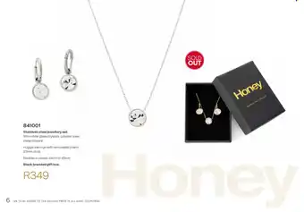Honey Fashion Accessories offers a wide collection of products, besides the Honey Stainless steel jewellery set. Keep an eye on the weekly Honey Fashion Accessories catalogue to find the best specials and promotions. Besides Honey Stainless steel jewellery set, you can also find the following offers: Honey Stainless steel jewellery set, Honey Stainless steel jewellery set & Honey 18ct gold plated stainless steel jewellery set.