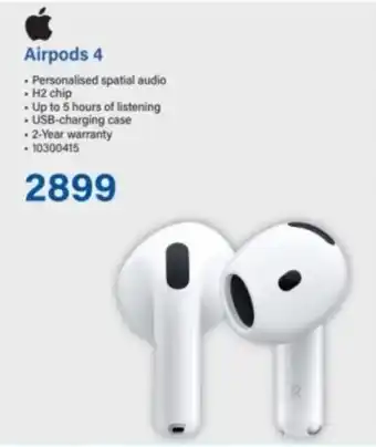 This discount promotion for Airpods 4 runs from 29-12-2025 to 02-02-2026. Has it ended? No problem — other Airpods 4 deals are always available. Follow the product category to stay informed when Airpods 4 is back on special. By comparing Airpods 4 prices and offers, you’ll always buy at the right moment.
